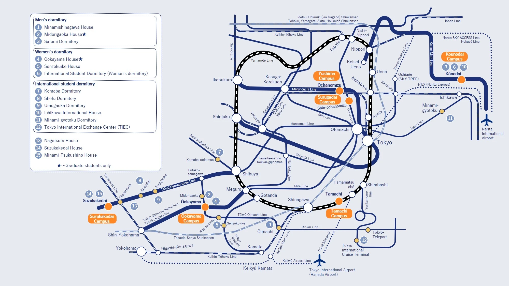 ◎ Ookayama ◎ Suzukakedai ◎ Tamachi ○ Yushima |