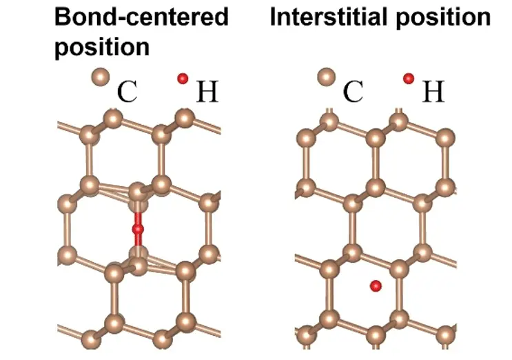 Structural configuration of a hydrogen atom within a diamond crystal