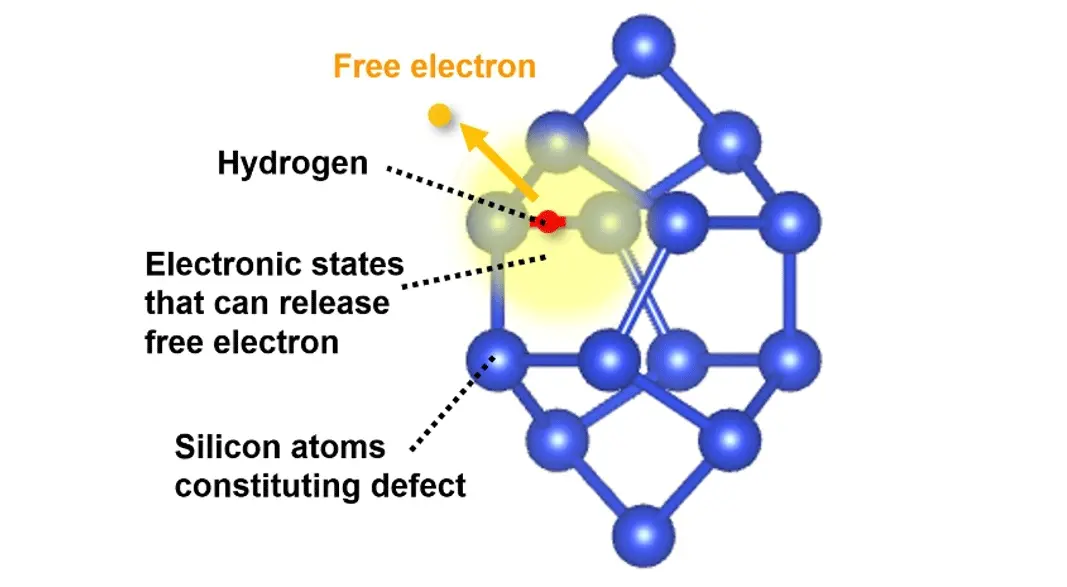 1.Mechanism by which a hydrogen-containing defect complex in silicon generates free electrons
