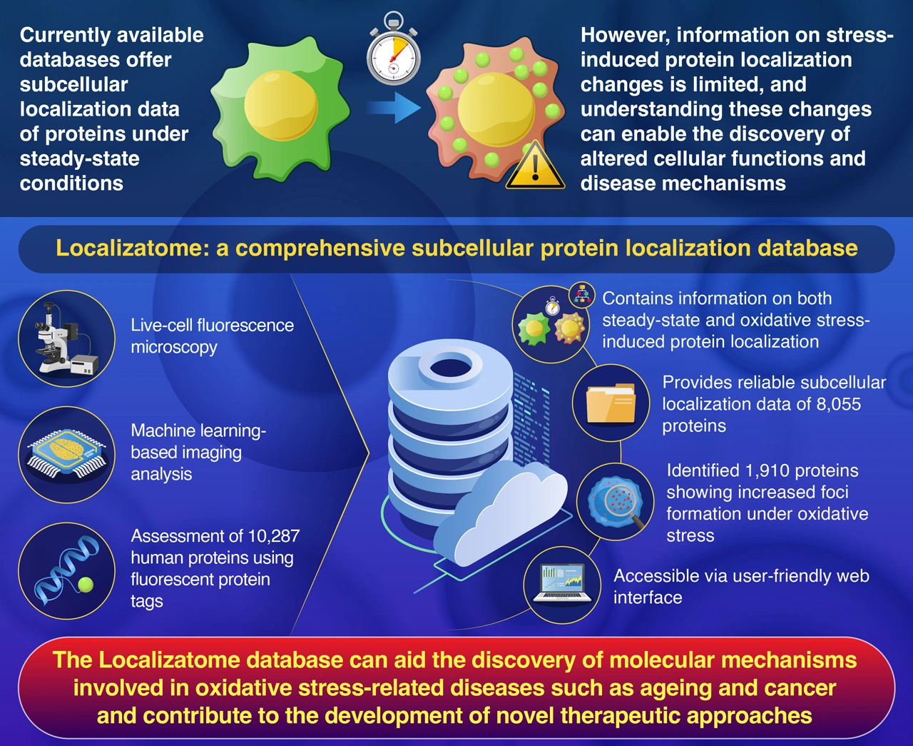 The development of the Localizatome database can drive future research in subcellular protein localization and may contribute to the elucidation of molecular mechanisms underlying oxidative stress-related diseases and aid the development of new therapeutic approaches.