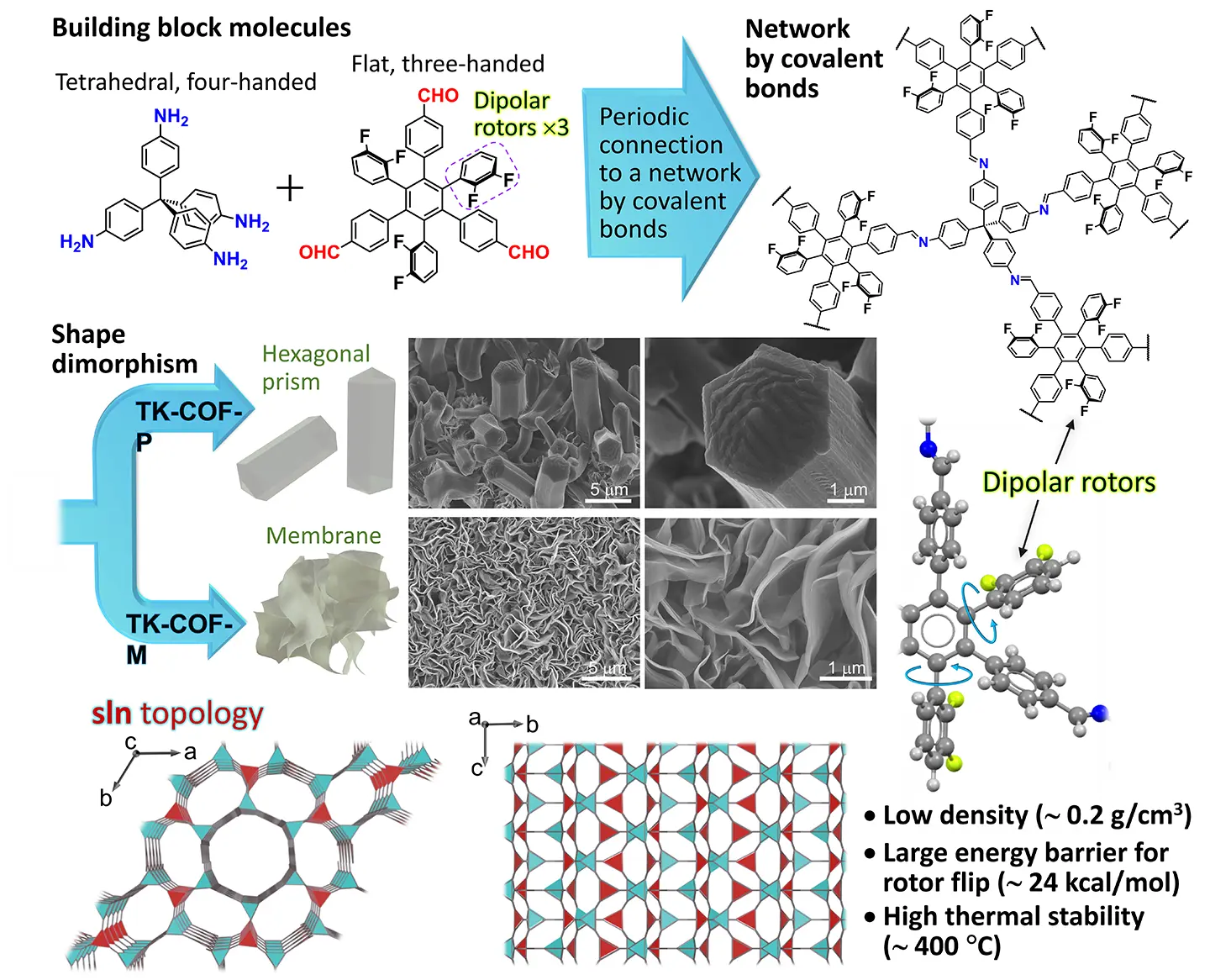 - sln-Topological Covalent Organic Frameworks with Shape Dimorphism and Dipolar Rotors
