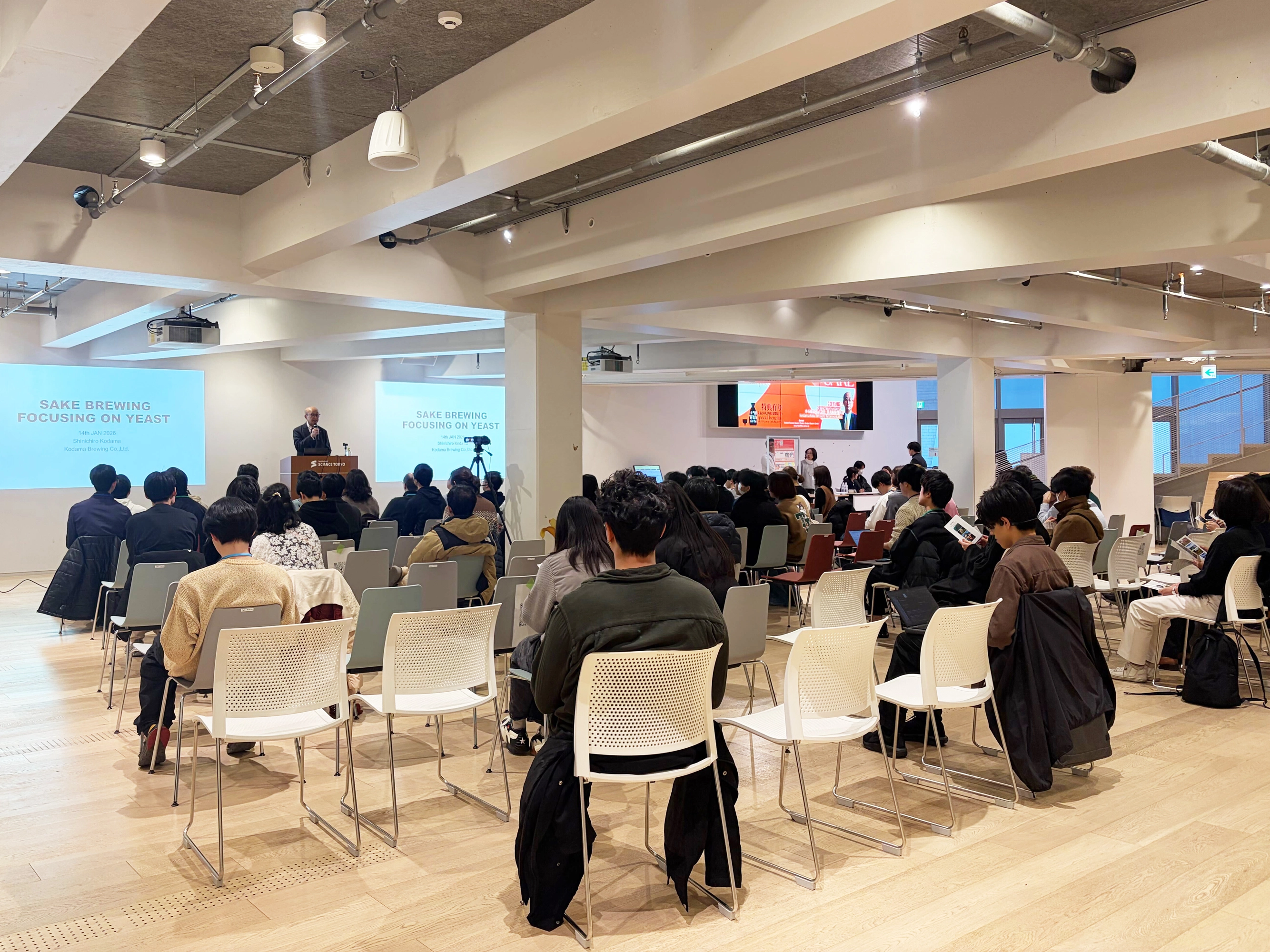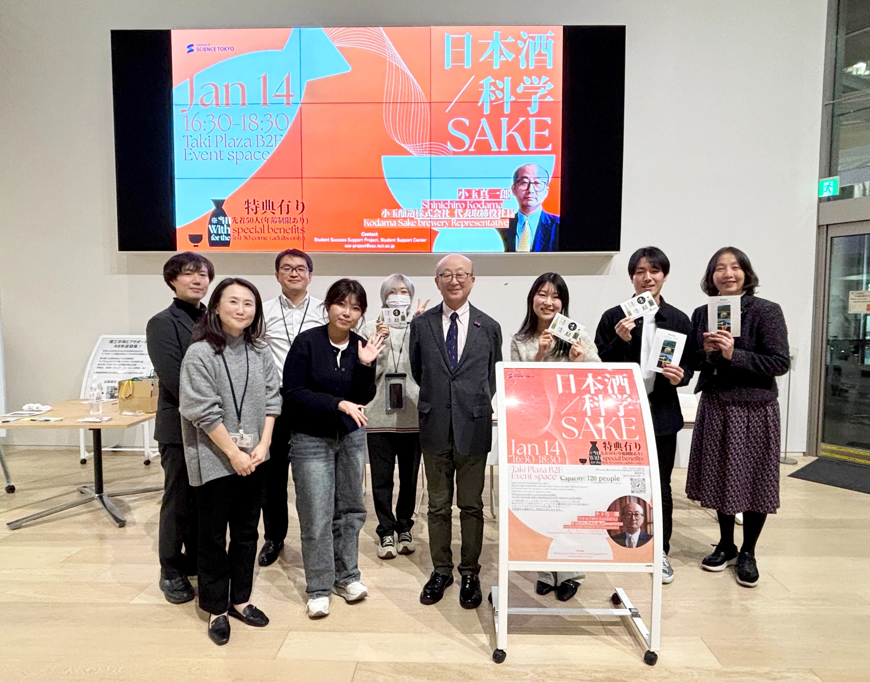 The Institute of Science Tokyo (Student Support Center and Student Support Division) held "Sake Tech Tokyo" on Wednesday, January 14, 2026, at the Hisao & Hiroko Taki Plaza (Taki Plaza), with the cooperation of the Kuramae Kogyokai (Alumni Association).