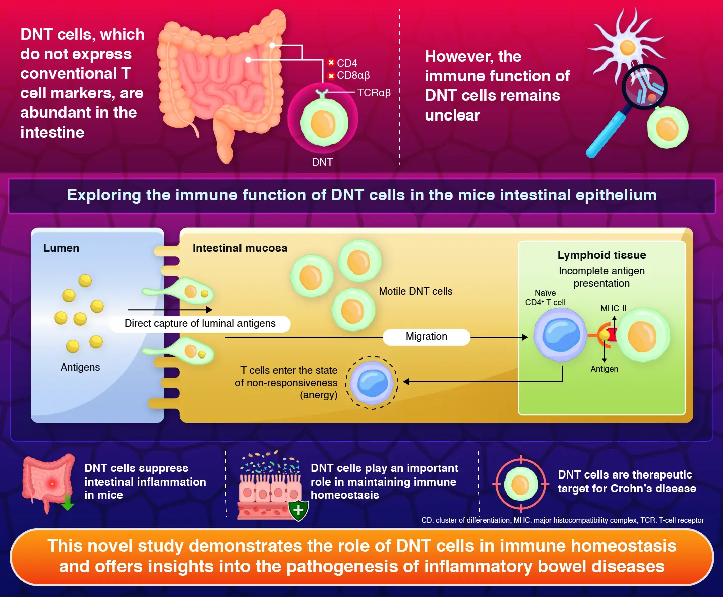 This novel study presents new insights into the mechanisms underlying intestinal inflammation and Crohn’s disease, suggesting that DNT cells may be a potential therapeutic target for treating this chronic condition in the future!