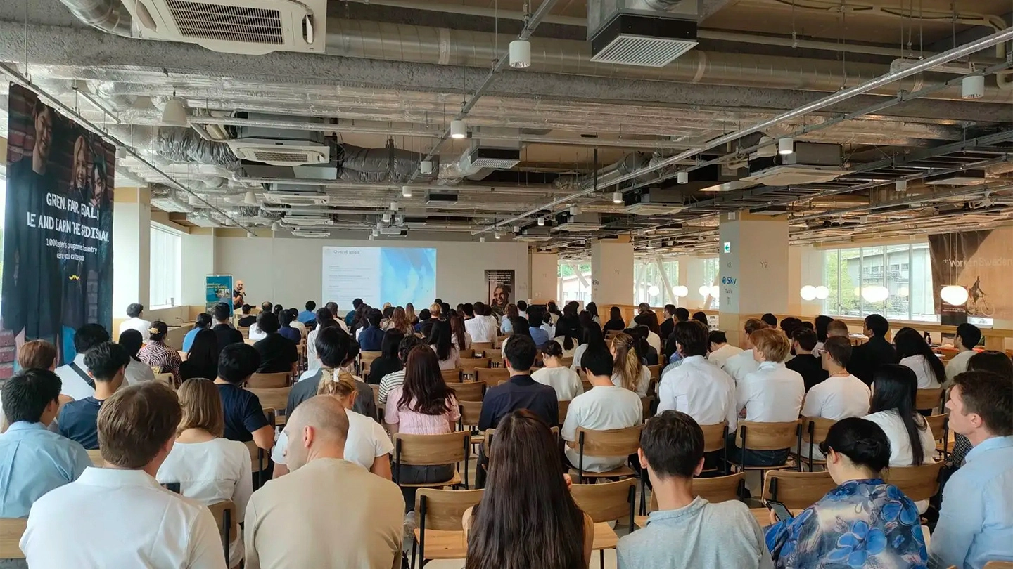 Later in the day, the Study + Work in Sweden 2025 event was held at Tsubame Terrace on Ookayama Campus. Forssell delivered a keynote speech introducing opportunities for study and careers in the northern European nation. The event featured participants with study abroad experience from Science Tokyo and many other universities, providing a valuable opportunity for students to deepen their interest in Sweden.