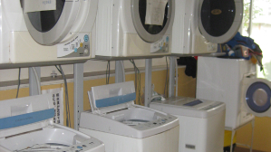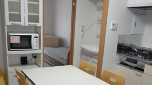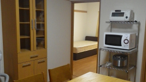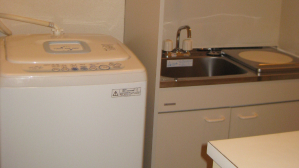 - ダイニングキッチン(冷蔵庫、テーブル、椅子、エアコン、電子レンジ)、シャワールーム、洗面台、トイレ、洗濯機、衣類乾燥機