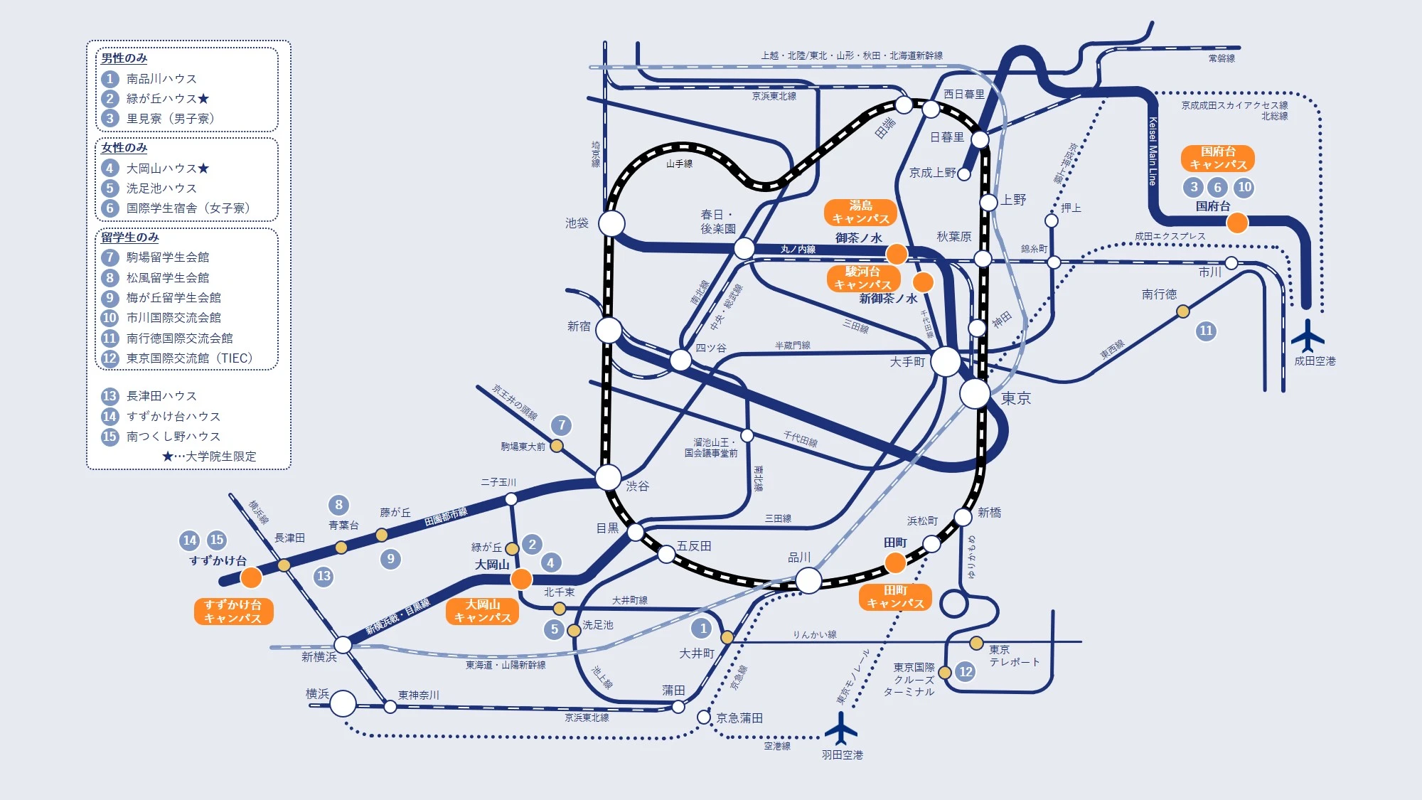 学生寮マップ(路線図)