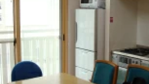 - 4つの個室とダイニングキッチン、シャワー及びトイレを共有するユニット式の寮。