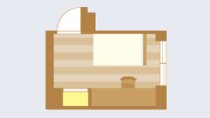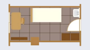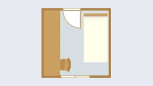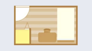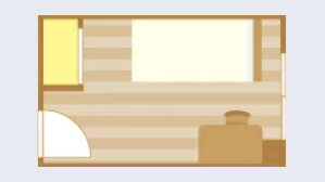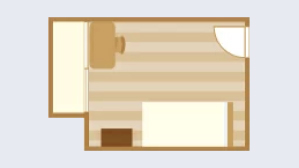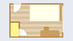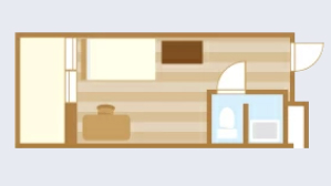 - 約16~21 ㎡。ベッド、クローゼット、簡易キッチン、冷蔵庫、シャワー・浴室、エアコン