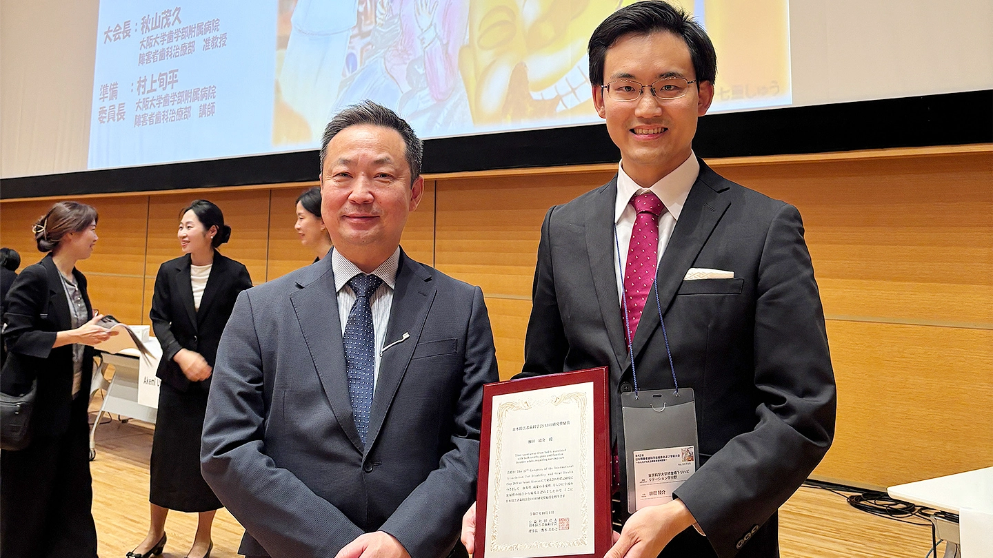 東京科学大学(Science Tokyo)医歯学総合研究科 摂食嚥下リハビリテーション学分野の柳田陵介医員が、公益社団法人 日本障害者歯科学会のiADH研究奨励賞を受賞しました。