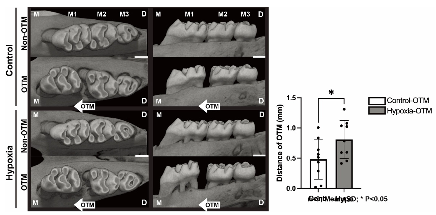 これらの結果から、持続的な低酸素環境下では矯正学的歯の移動速度が亢進する一方で、移動後の歯槽骨形成が抑制され、健全な歯周組織のリモデリングが阻害される可能性が示唆されました。
