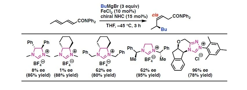 - Iron/NHC-Catalyzed Regio- and Stereoselective 1,6-Additions of Aliphatic Grignard Reagents to α,β,γ,δ-Unsaturated Carbonyl Compounds: Asymmetric Variants with Chiral NHCs
