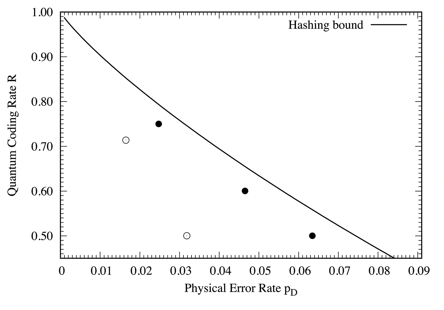 - ハッシング限界:シングルレター化されたコヒーレント情報。量子通信路を通じてエラーなしに伝送できる量子情報の理論上の最大量(量子容量)の下限値であり、量子誤り訂正性能のベンチマークとされる。