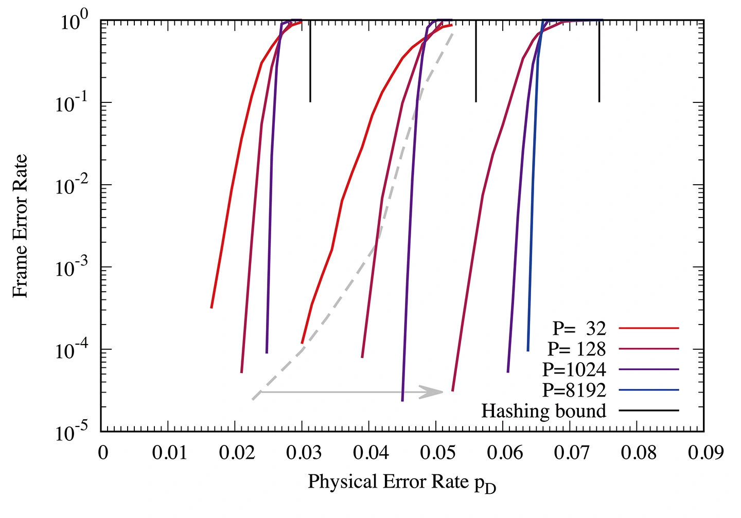 しかし、装置の制約を取り除いた理想的な符号理論の枠組みに限定したとしても、量子誤り訂正符号の設計には未解決の課題が残されていました。代表的なものとして、低い符号化率、鋭い閾値現象の不足による性能改善の限界、エラーフロアによる高信頼領域での性能劣化、ハッシング限界[用語6]までの大きな隔たり、さらにビリーフプロパゲーション復号後に必要となる高コストな後処理などが挙げられます。量子コンピュータが実用的な問題を解くためには大規模化が不可欠ですが、量子誤り訂正は規模を大きくするほど理論的には性能が向上することが知られています。それにもかかわらず、これまで大規模化のメリットを真に活かせる量子LDPC符号は見つかっていませんでした。