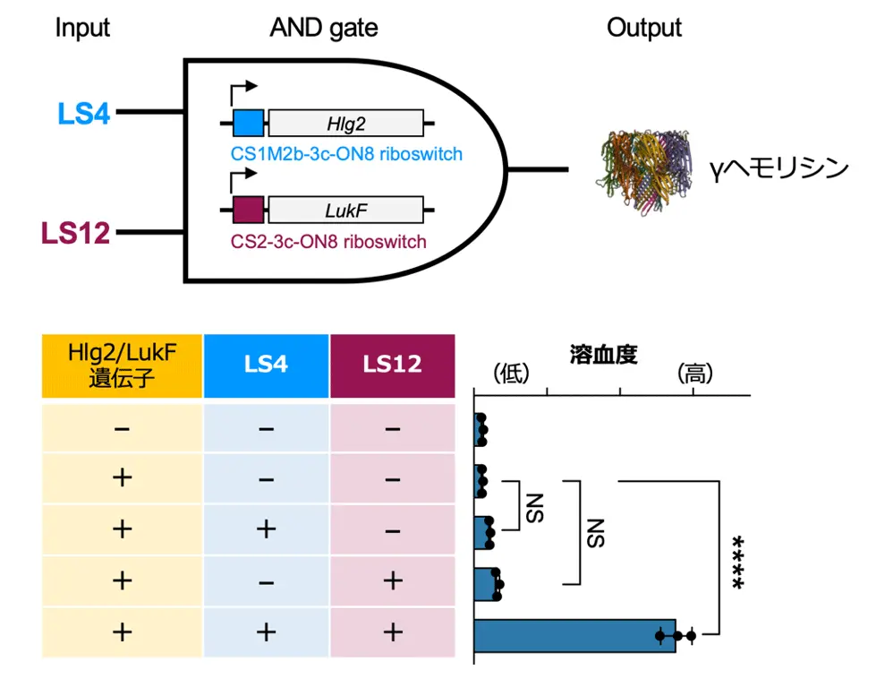 - γ−ヘモリシンの機能発現を制御する論理回路(AND回路)を構築。
