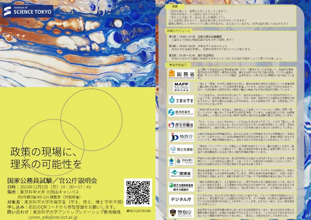 アントレプレナーシップ教育機構にて、国家公務員試験/官公庁説明会を開催します!