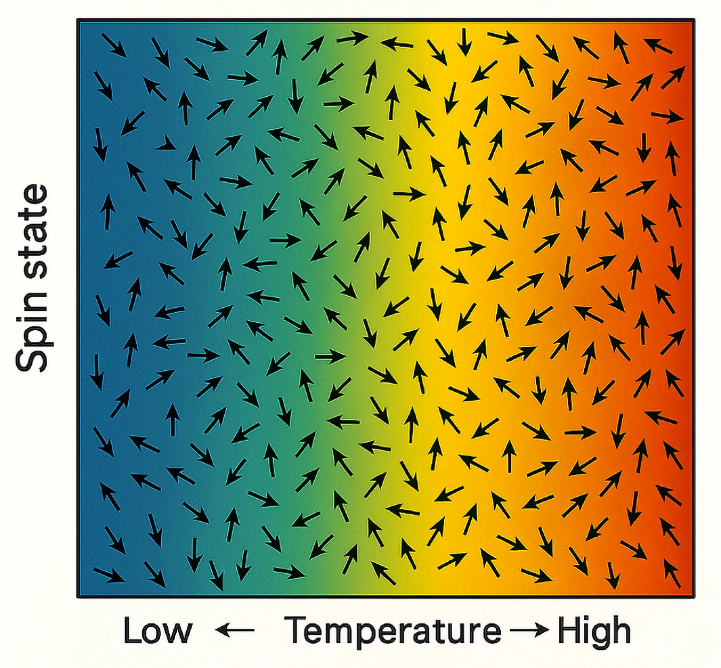 - 温度カオス:スピングラスを冷やすとスピンは特定の配置に落ち着くが、温度を少し変えるだけで配置全体が大きく変わる現象。