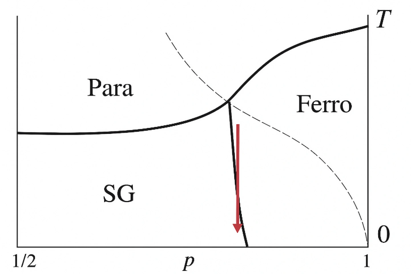 - リエントラント転移:通常は冷やすほど秩序が増すが、さらに冷やすと再び無秩序に戻るという逆説的な現象。