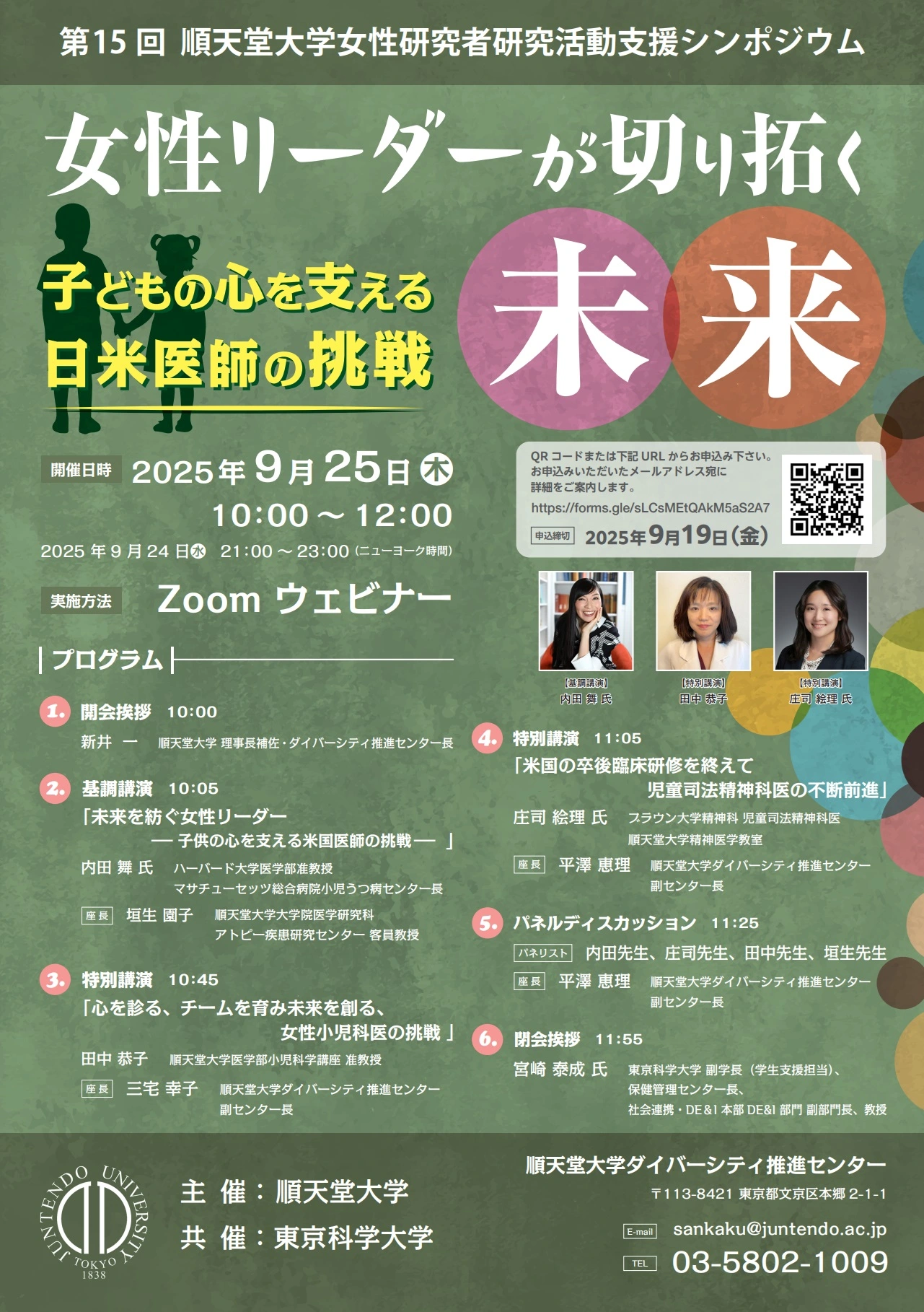 シンポジウム「女性リーダーが切り拓く未来 ー子どもの心を支える日米医師の挑戦ー」(順天堂大学主催/本学共催)