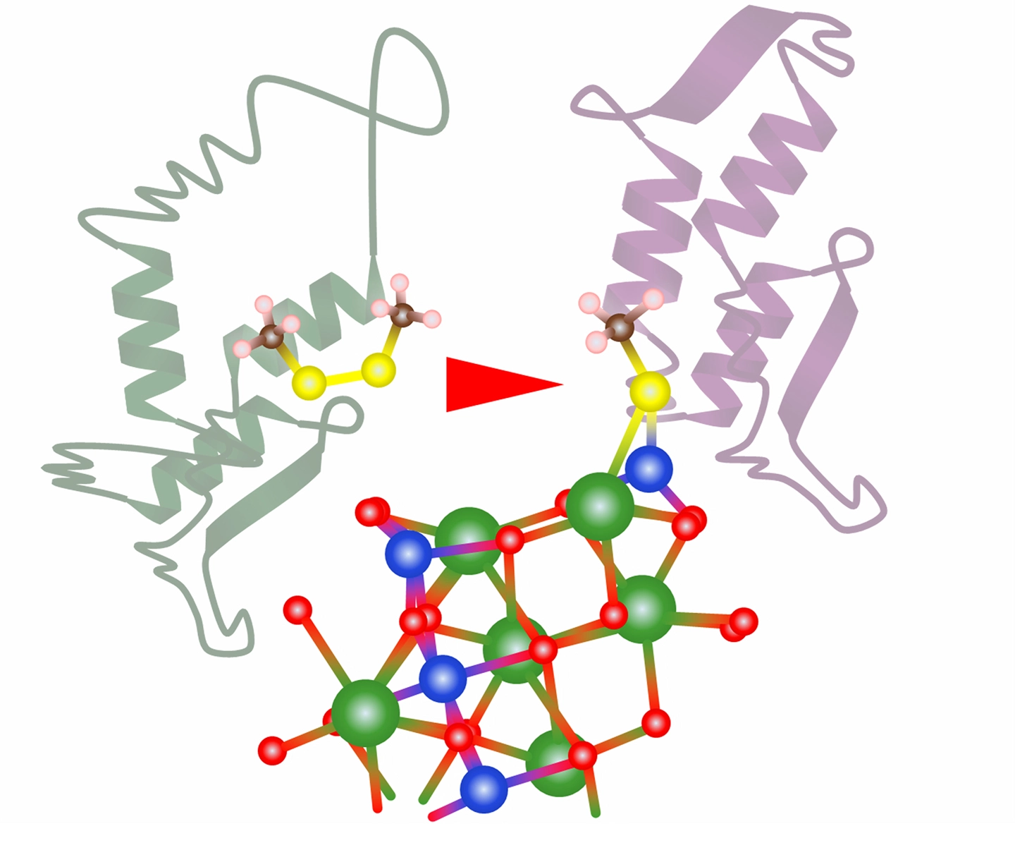 さらに研究グループは、世界で初めて、第一原理計算を、酸化物表面におけるジスルフィド結合切断の評価にも適用しました。その結果、Cuを含む酸化物表面でジスルフィド結合の切断が起きうることが明らかとなりました(図1)。この結果から、複合酸化物表面は、接触したノンエンベロープ型ウイルスの表面を覆うタンパク質を不安定化することで、高い抗ウイルス活性を示した可能性が高いことを突き止めました。