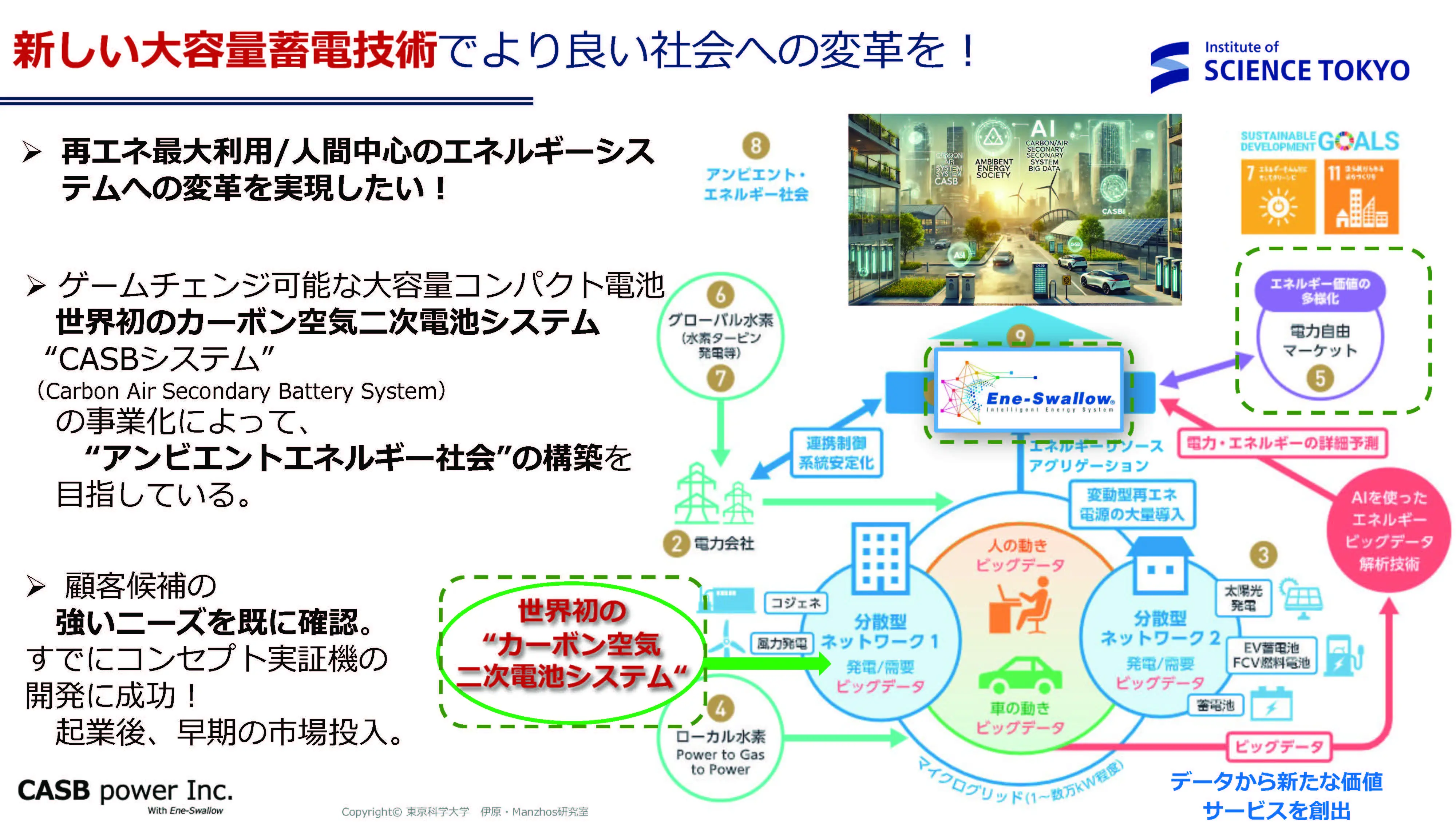 世界初、"カーボン空気二次電池(CASB)システム"の実用化で、安く再生可能エネルギーを活用できる社会への変革をします。