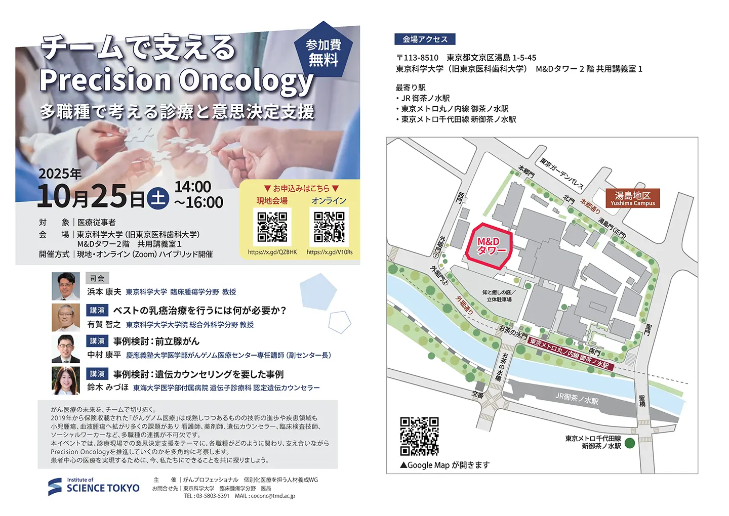 本イベントでは、診療現場での意思決定支援をテーマに、各職種がどのように関わり、支え合いながらPrecision Oncologyを推進していくのかを多角的に考察します。