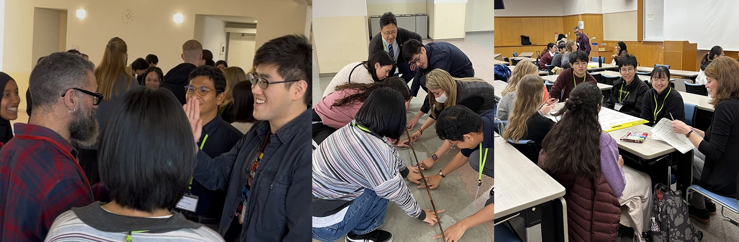 2日目の午前中は5つの課題をチームでクリアしていくゲーム型のアクティビティが行われました。いずれもコミュニケーション力やチーム内で協力しあえる信頼関係ができているかがカギとなります。本学の猪原健弘教授考案の研究倫理について正しく理解するアクティビティもその中の一つでした。参加者達は頭を悩ませながらも互いに声を掛け合って課題に取り組み、終了後にはチームとしての一体感が飛躍的に高まったようでした。また、昨年ロンドンでGFPに参加した本学の博士課程学生3名がゲームの進行役として参加しました。