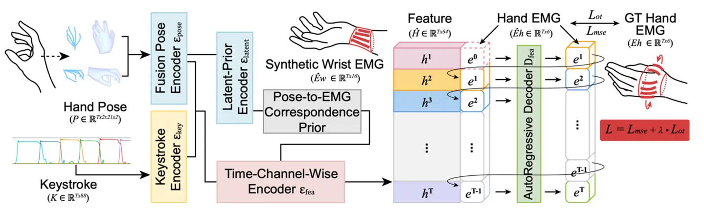 - 手指画像、キーストローク、音声、筋電を用いて学習させた深層学習ネットワークを用いて手指画像だけから筋電を高精度に推定。