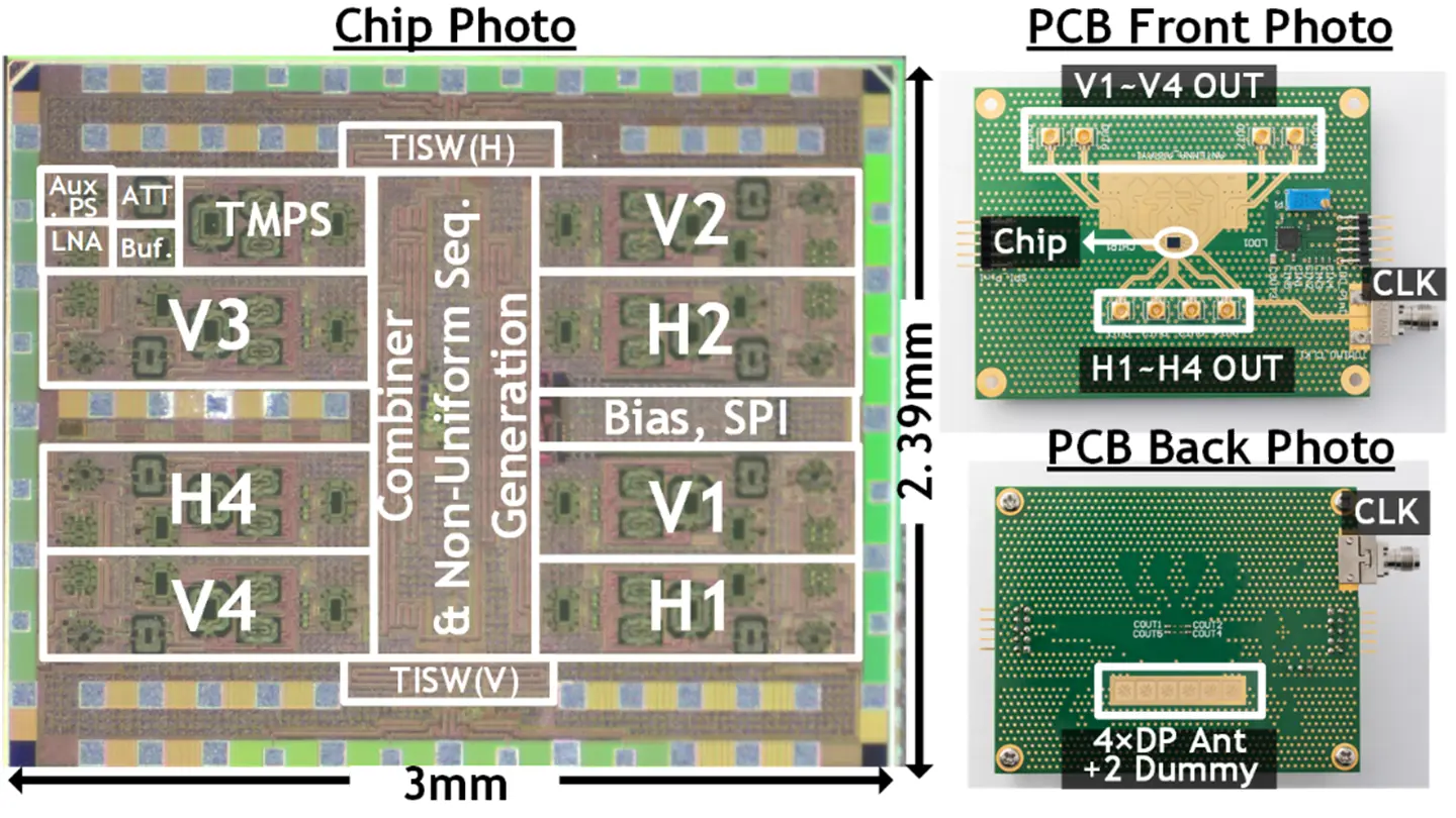 東京科学大学(Science Tokyo) 工学院 電気電子系の岡田健一教授らの研究チームは、次世代の6G[用語1]に向けた、高面積効率・低消費電力で高データレート動作が可能な独自の時分割[用語2]MIMO技術[用語3]により、これまでより4倍高速なフェーズドアレイ[用語4]受信機を開発しました。