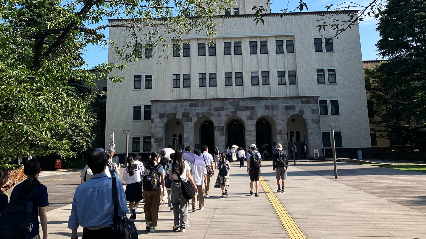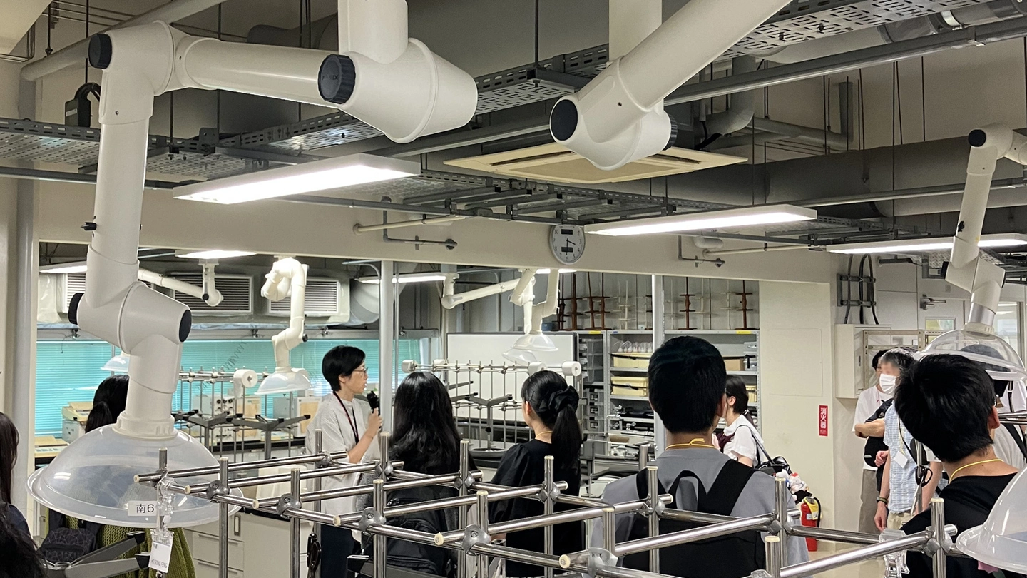 晴天に恵まれた中、大岡山キャンパス内を散策しながら、Hisao & Hiroko Taki Plaza 1階および応用化学系学生実験室を見学しました。参加者はさまざまな実験設備や研究機器に興味深く見入っており、本学の施設や教育・研究環境を体感していただくことができました。