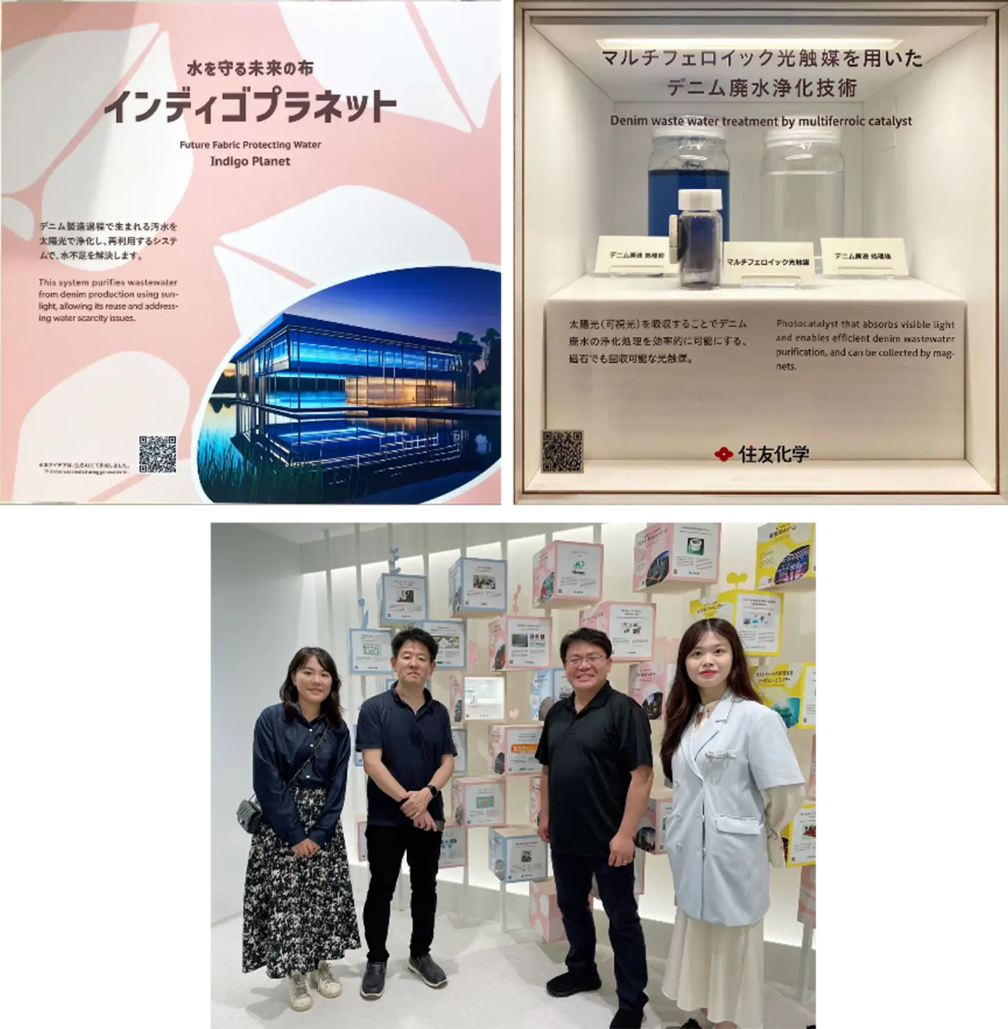 東京科学大学(Science Tokyo) 総合研究院 フロンティア材料研究所のTso-Fu Mark Chang(チャン・ツォーフー・マーク)准教授と岡本敏特任教授を中心とする研究チームは、住友化学次世代環境デバイス協働研究拠点にて、工業用廃水の浄化による持続可能な産業の発展と環境負荷の軽減を目指しています。特に、デニム産業における染色プロセスから発生する染料を含む廃水の環境への負荷は大きく、この問題解決は産業の持続可能性を高める上で不可欠です。チャン准教授と岡本特任教授のチームは、マルチフェロイック[用語1]光触媒材料を用いて、太陽エネルギーを活用した環境に優しく、かつ効率的な廃水浄化方法の開発に取り組んでいます。この度、2025年日本国際博覧会(大阪・関西万博)の「住友館」にてマルチフェロイック光触媒材料と、デニムの染色廃水の浄化前後の様子が展示されています。10月の会期終了まで展示がされる予定ですので、是非ともご覧ください。