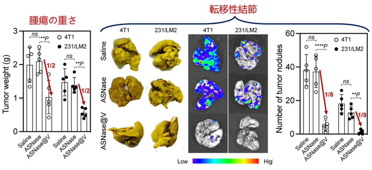 - 「薬を入れる」から「環境を変える」へ。アスパラギナーゼ搭載の小胞型ナノ反応器が血中で持続的に L-アスパラギンを枯渇させ、全身性の兵糧攻めで固形がんの治療感受性を高めます(ALL/LBL に限られてきた戦略の拡張)。
