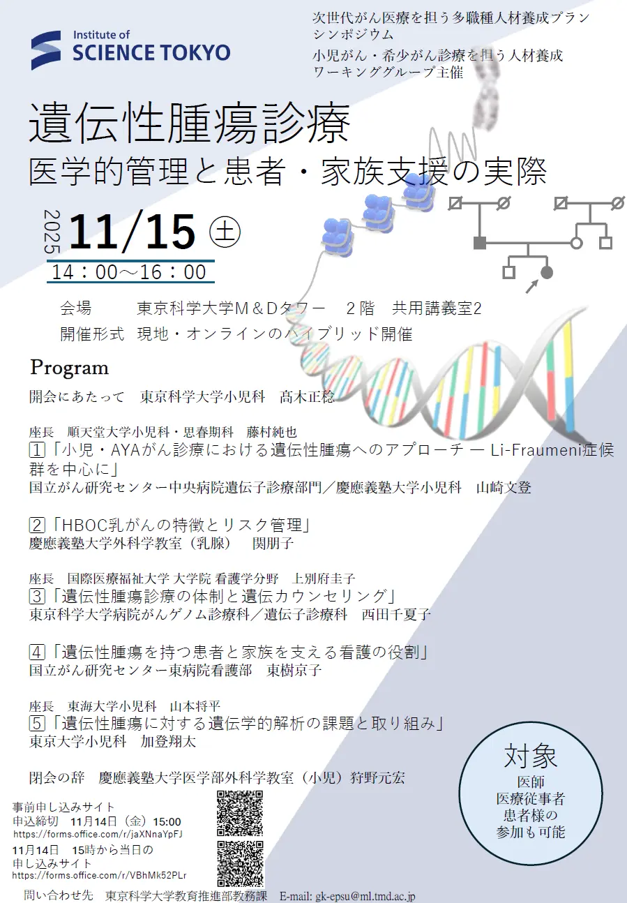 東京科学大学病院がんゲノム診療科/遺伝子診療科 西田千夏子 -
