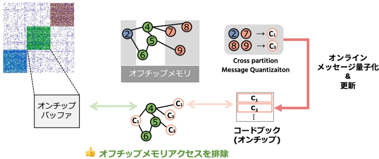 不規則なメモリアクセスの大幅削減を実現する「Cross-Partition Message Quantization(CMQ)」
