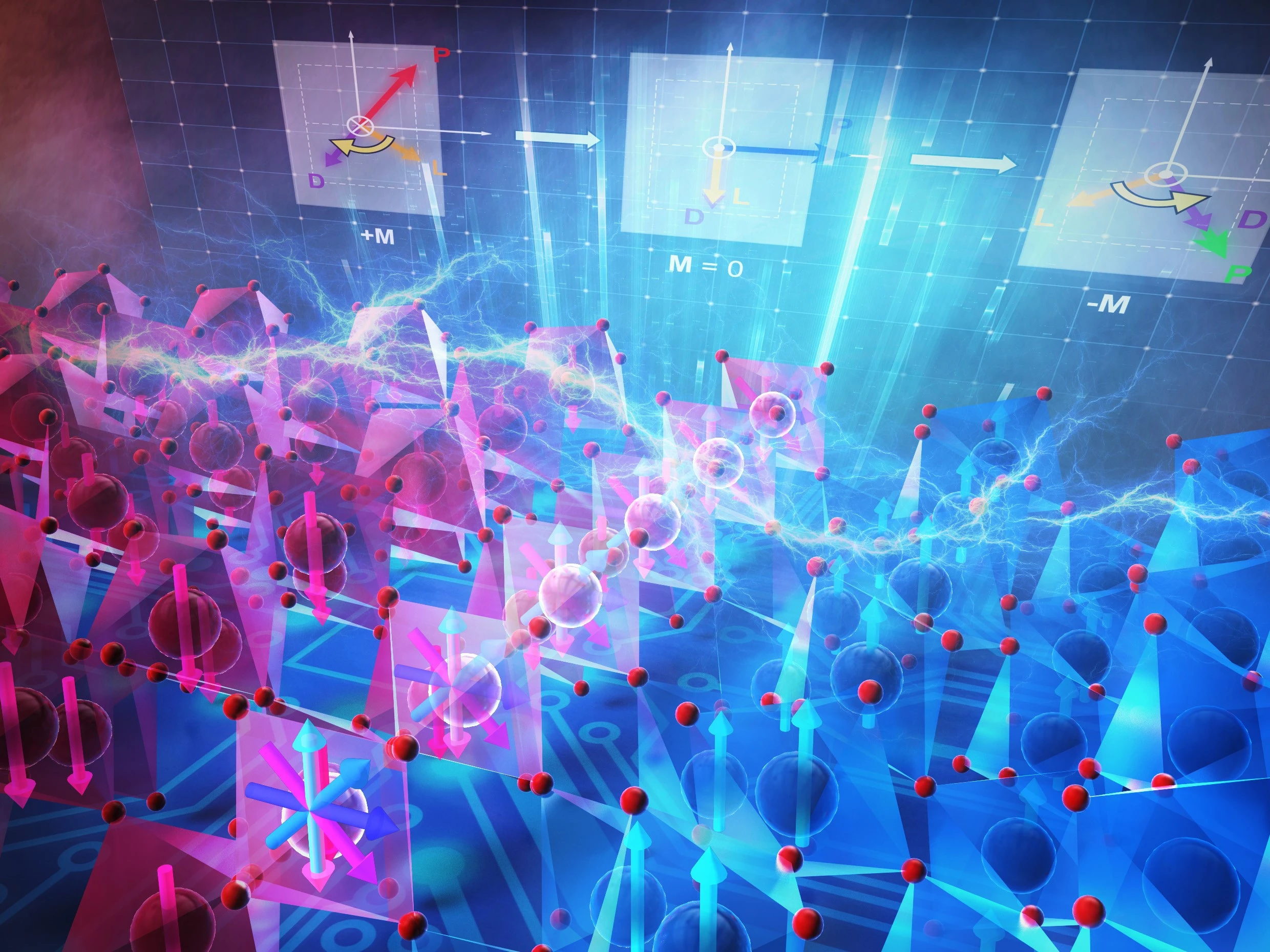 - 理論計算から、分極反転角度の違いが磁化反転の方向に強く関係することを示唆。