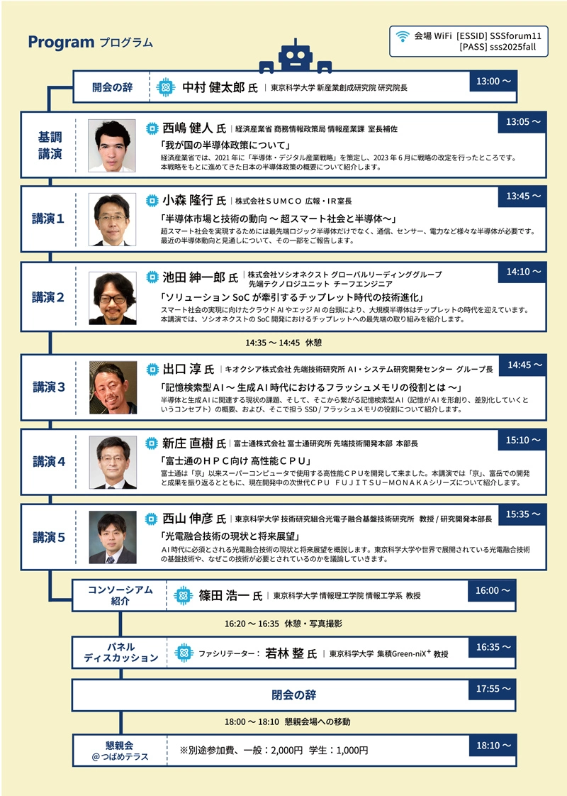 Science Tokyoからは西山伸彦教授(工学院)が講演を行う他、篠田浩一教授(情報理工学院)がコンソーシアムの紹介、若林整教授(総合研究院)がパネルディスカッションのファシリテーターを務めます。